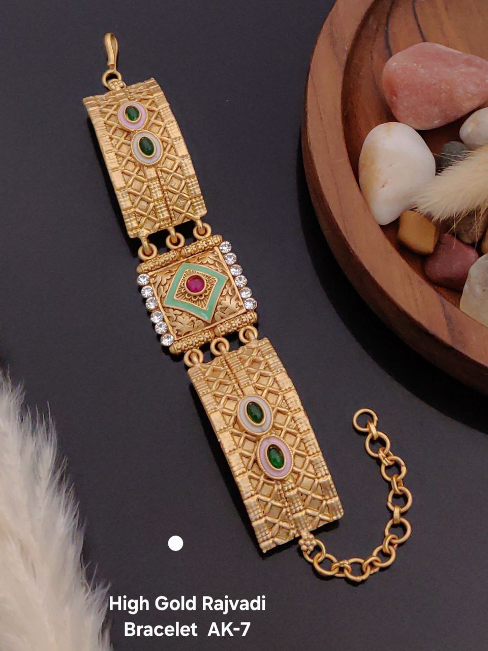 Add a touch of luxury to your wrist with this Designer Gold Plated AD Diamond Studded Forming Bracelet. Meticulously crafted to perfection, this stunning piece features sparkling American Diamonds set on a high-quality forming base with a rich gold plated finish. The intricate design reflects fine craftsmanship, offering the brilliance of real jewelry at a fraction of the cost.