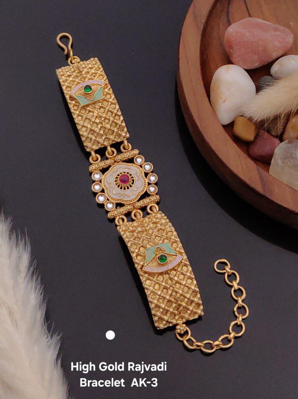 Add a touch of luxury to your wrist with this Designer Gold Plated AD Diamond Studded Forming Bracelet. Meticulously crafted to perfection, this stunning piece features sparkling American Diamonds set on a high-quality forming base with a rich gold plated finish. The intricate design reflects fine craftsmanship, offering the brilliance of real jewelry at a fraction of the cost.