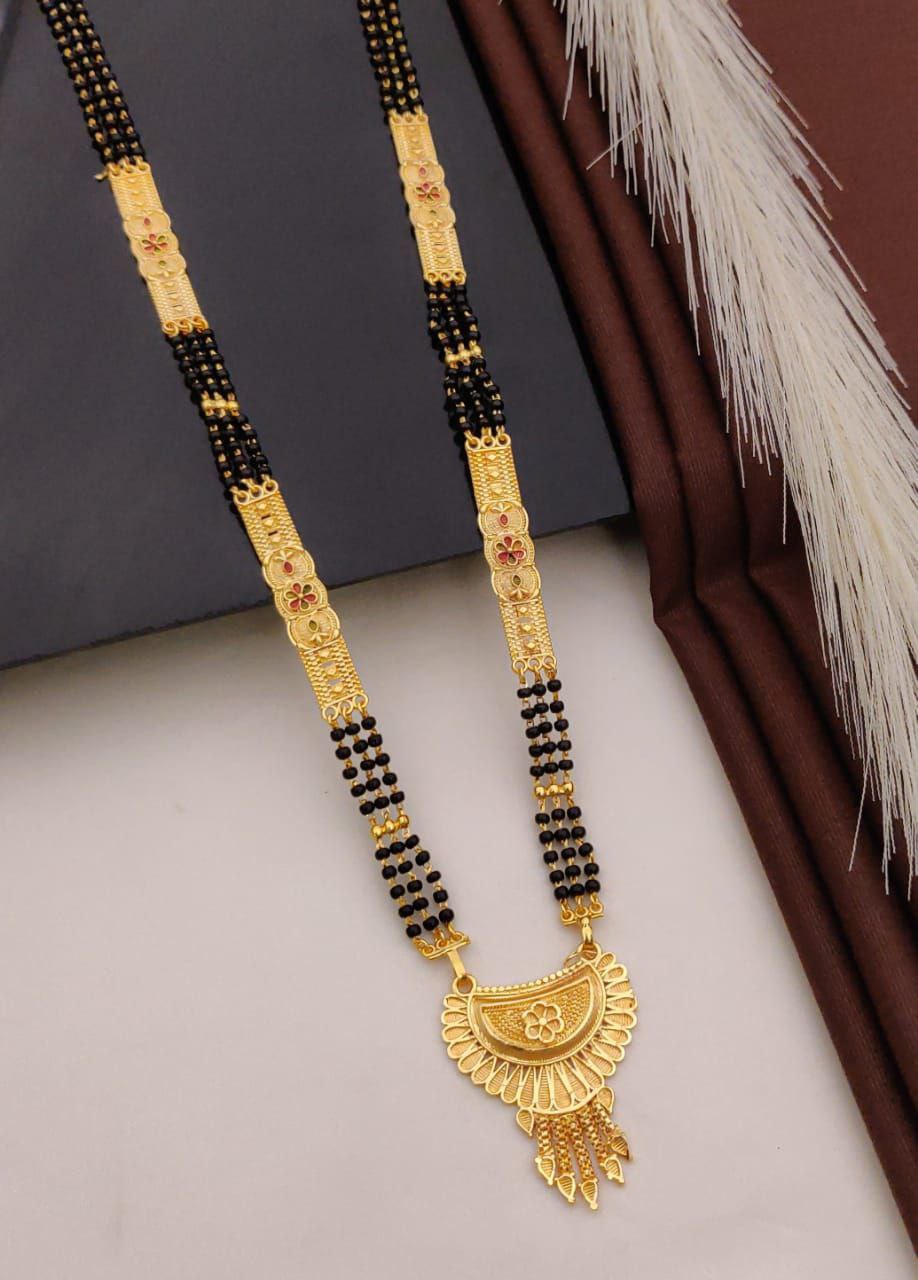Embrace tradition with a touch of modern elegance with this Forming AD Diamond High Gold Plated 3-Line Mangalsutra. Designed to symbolize love and commitment, this exquisite piece features three delicate black bead chains, complemented by a beautifully crafted American Diamond (AD) studded pendant, all finished with high gold plating for a luxurious look.