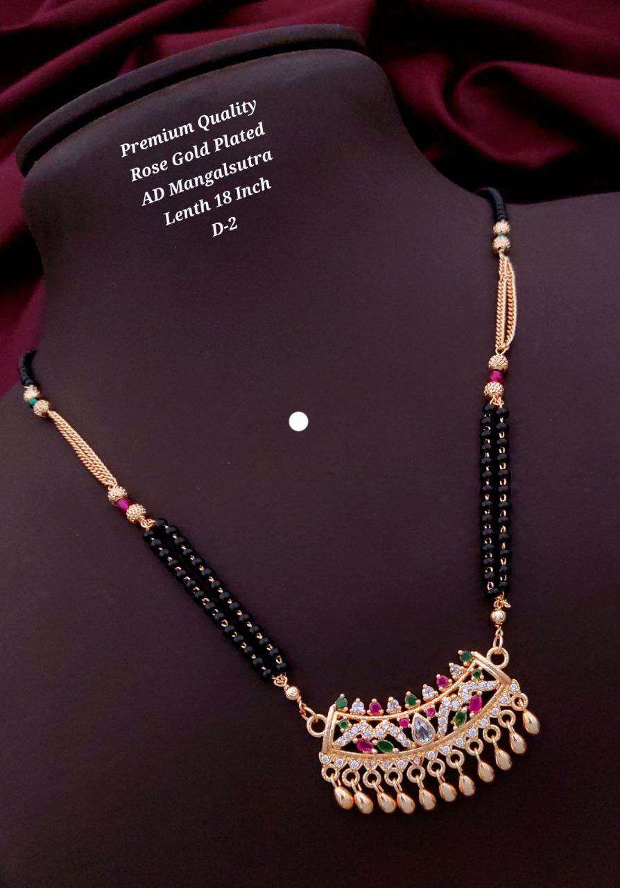 Embrace tradition with a touch of modern elegance with this Forming AD Diamond High Gold Plated 3-Line Mangalsutra. Designed to symbolize love and commitment, this exquisite piece features three delicate black bead chains, complemented by a beautifully crafted American Diamond (AD) studded pendant, all finished with high gold plating for a luxurious look.