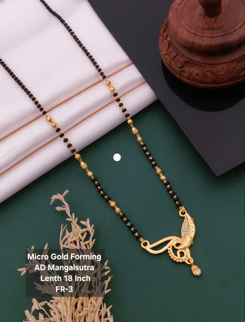 Embrace tradition with a touch of modern elegance with this Forming AD Diamond High Gold Plated 3-Line Mangalsutra. Designed to symbolize love and commitment, this exquisite piece features three delicate black bead chains, complemented by a beautifully crafted American Diamond (AD) studded pendant, all finished with high gold plating for a luxurious look.