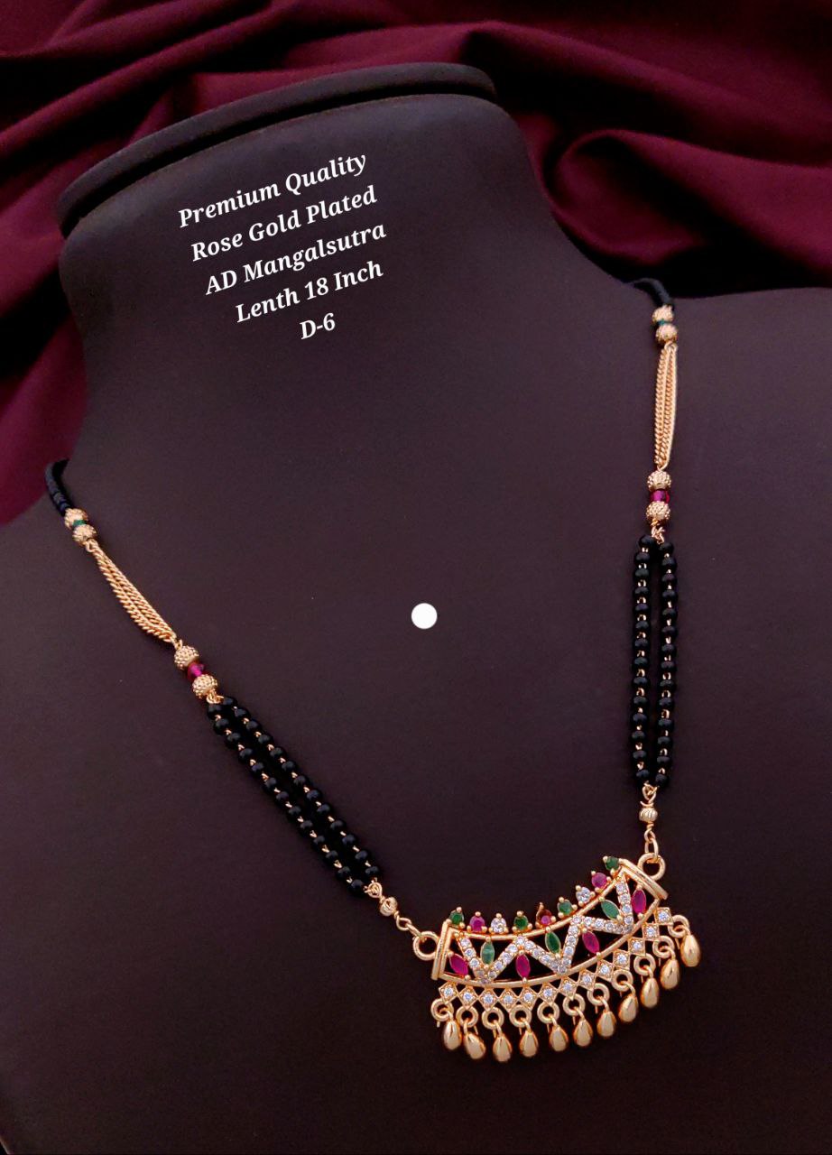 Embrace tradition with a touch of modern elegance with this Forming AD Diamond High Gold Plated 3-Line Mangalsutra. Designed to symbolize love and commitment, this exquisite piece features three delicate black bead chains, complemented by a beautifully crafted American Diamond (AD) studded pendant, all finished with high gold plating for a luxurious look.