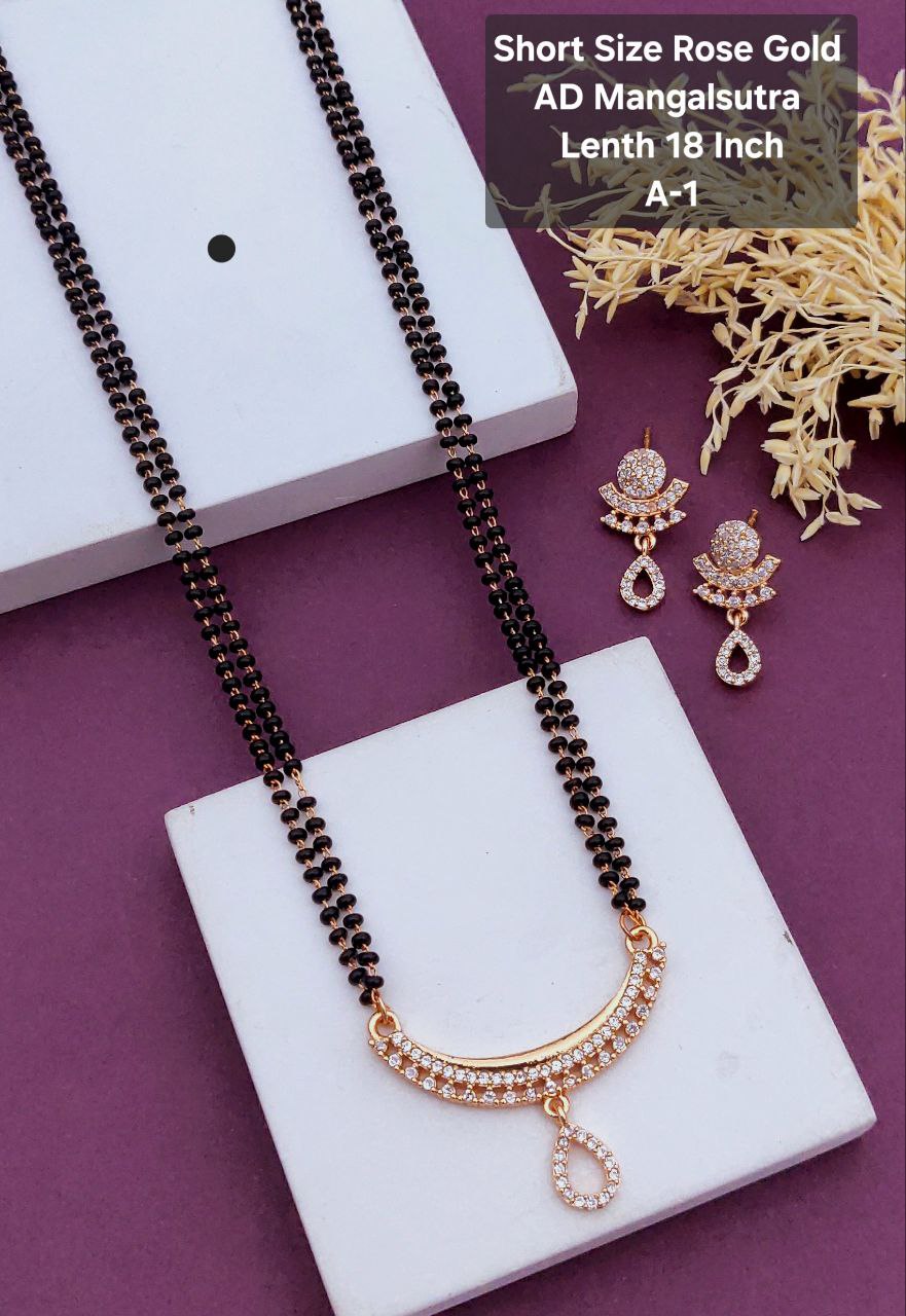 Embrace tradition with a touch of modern elegance with this Forming AD Diamond High Gold Plated 3-Line Mangalsutra. Designed to symbolize love and commitment, this exquisite piece features three delicate black bead chains, complemented by a beautifully crafted American Diamond (AD) studded pendant, all finished with high gold plating for a luxurious look.