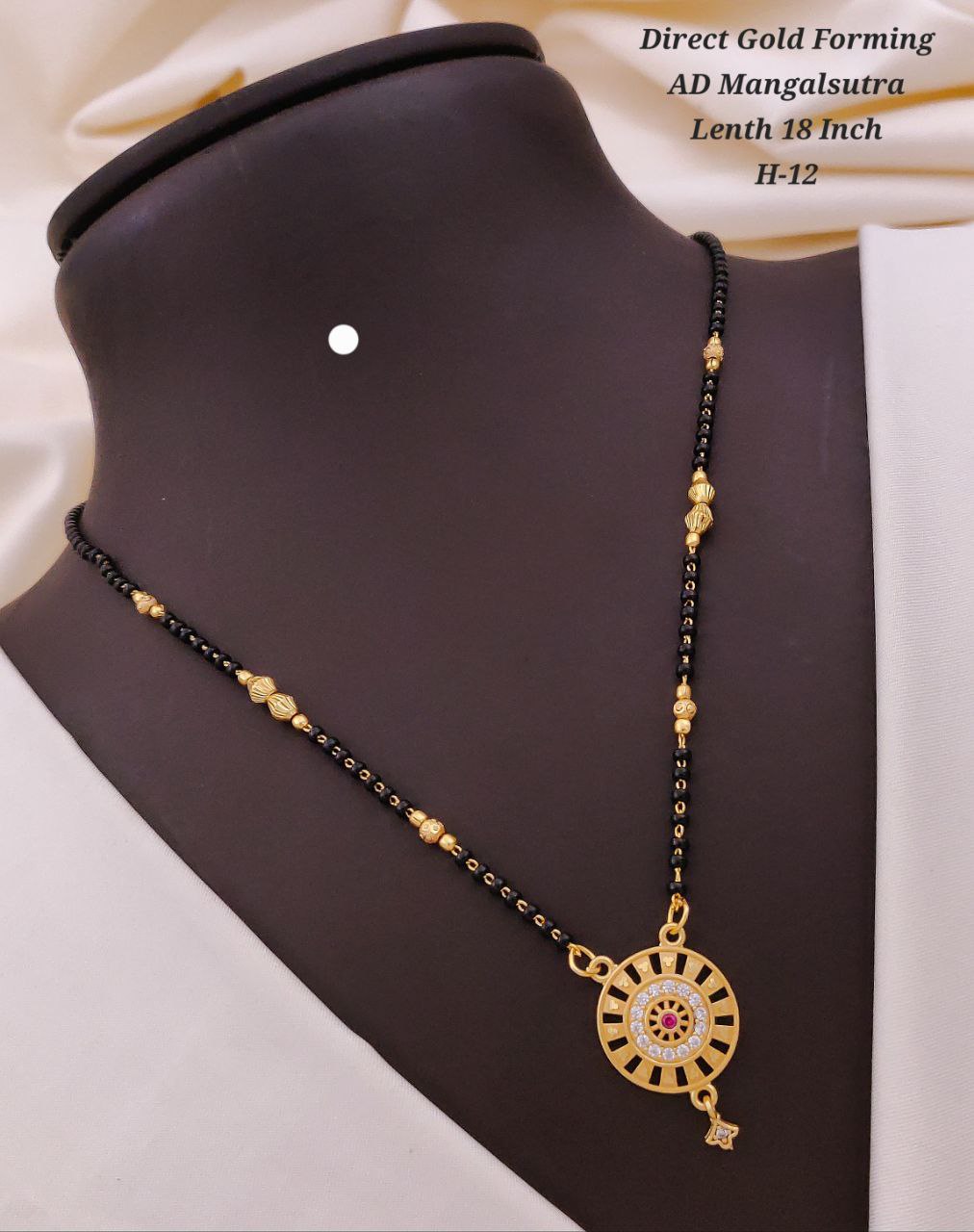 Embrace tradition with a touch of modern elegance with this Forming AD Diamond High Gold Plated 3-Line Mangalsutra. Designed to symbolize love and commitment, this exquisite piece features three delicate black bead chains, complemented by a beautifully crafted American Diamond (AD) studded pendant, all finished with high gold plating for a luxurious look.