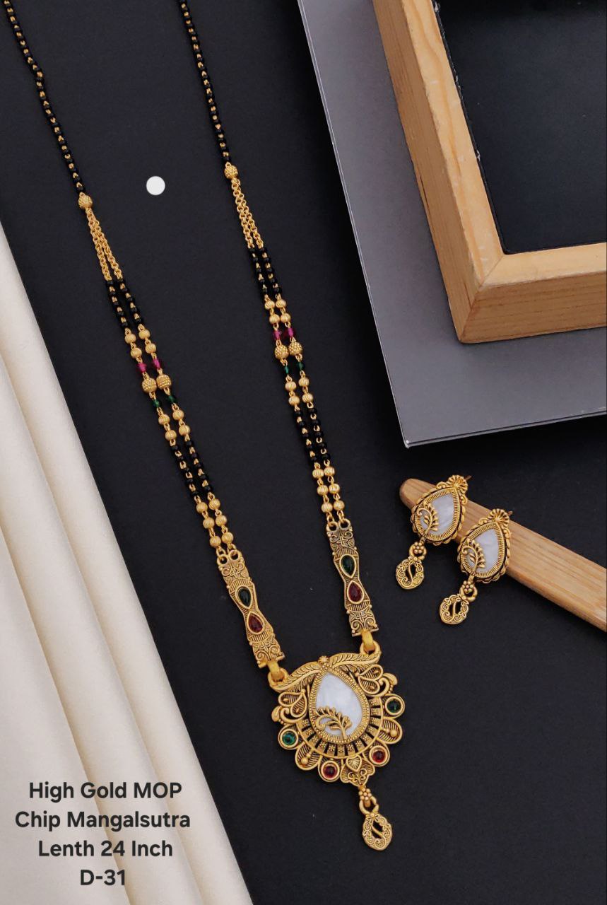 Embrace tradition with a touch of modern elegance with this Forming AD Diamond High Gold Plated 3-Line Mangalsutra. Designed to symbolize love and commitment, this exquisite piece features three delicate black bead chains, complemented by a beautifully crafted American Diamond (AD) studded pendant, all finished with high gold plating for a luxurious look.